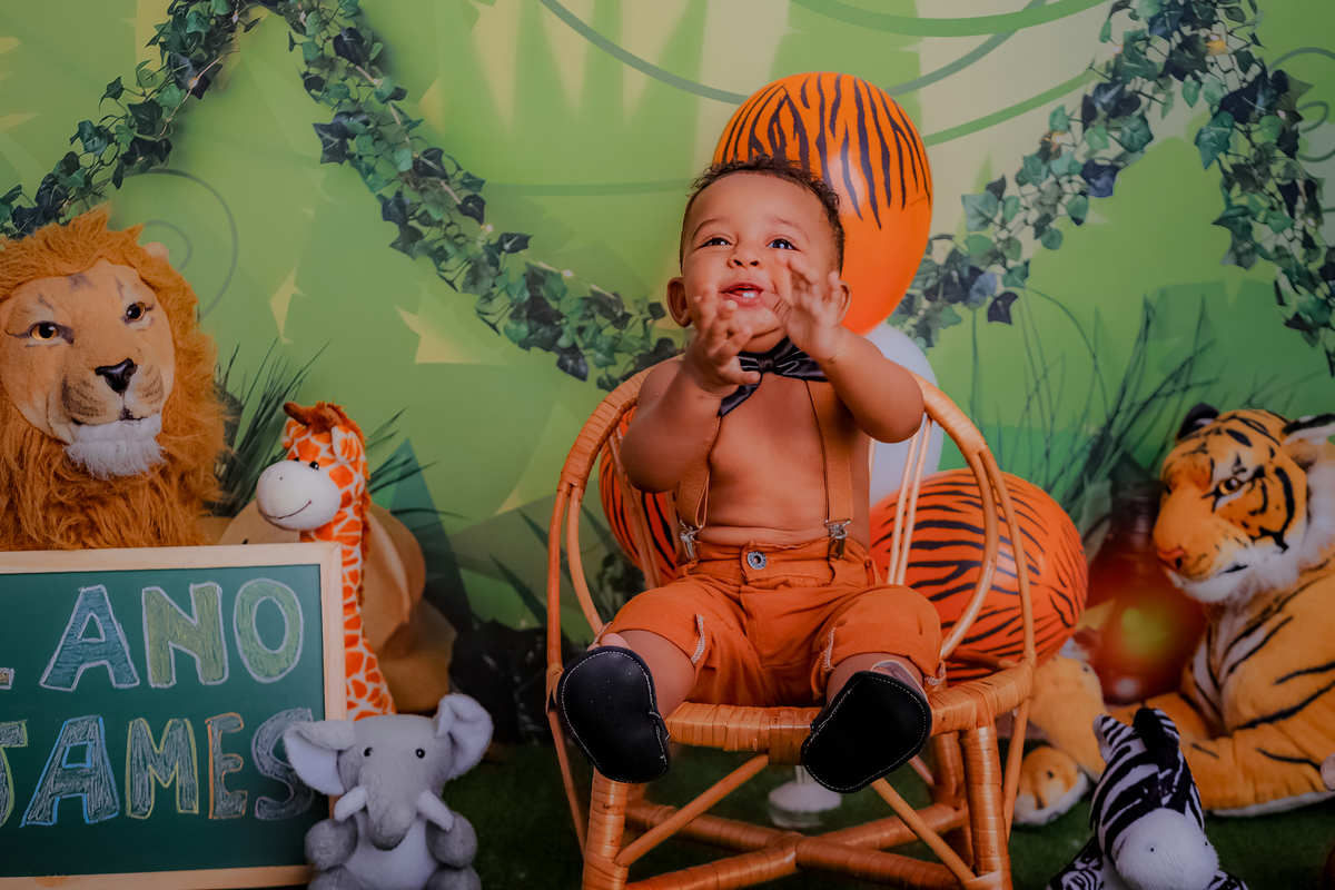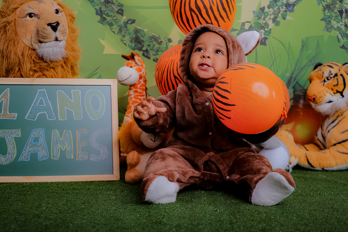 Olha que incrível que ficou o ensaio do pequeno James Asaph com o tema escolhido safari!