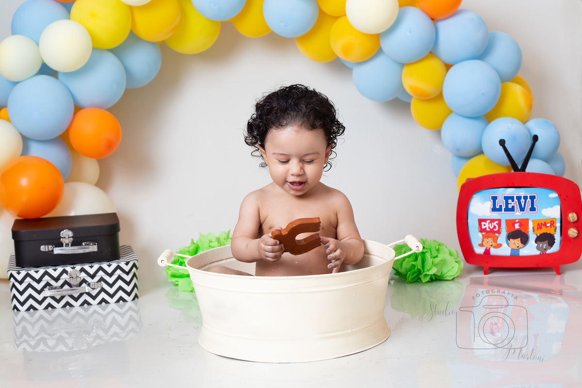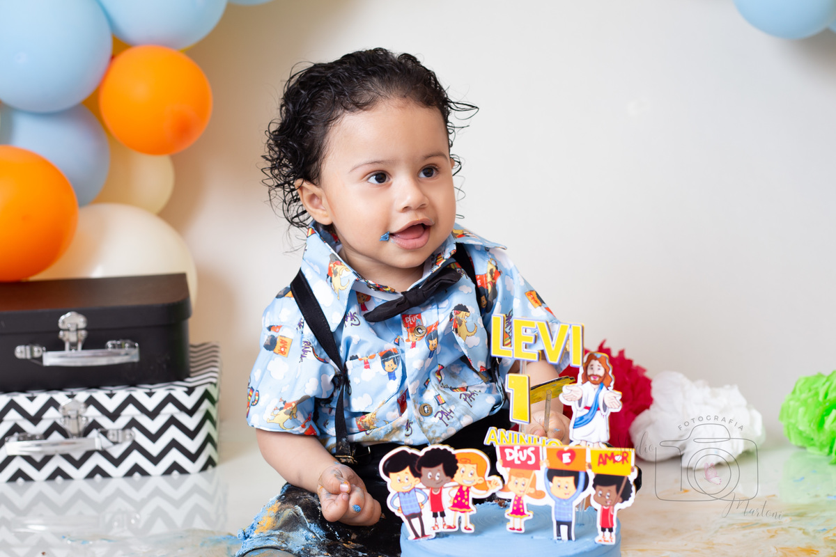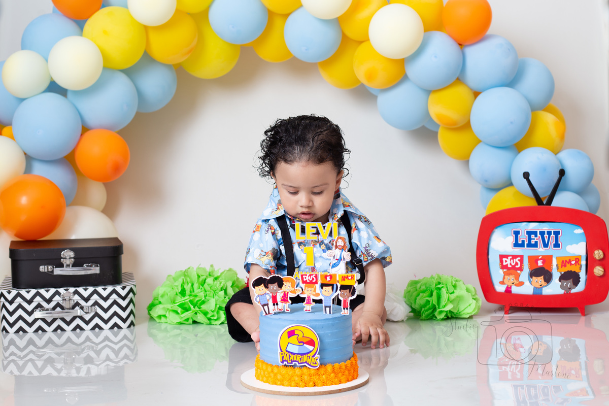 O tema escolhido pela mamãe do pequeno Levi foi 3 palavrinhas e olhem como o pequeno Levi se divertiu e brincou com o bolo no nosso cenário!!!!!